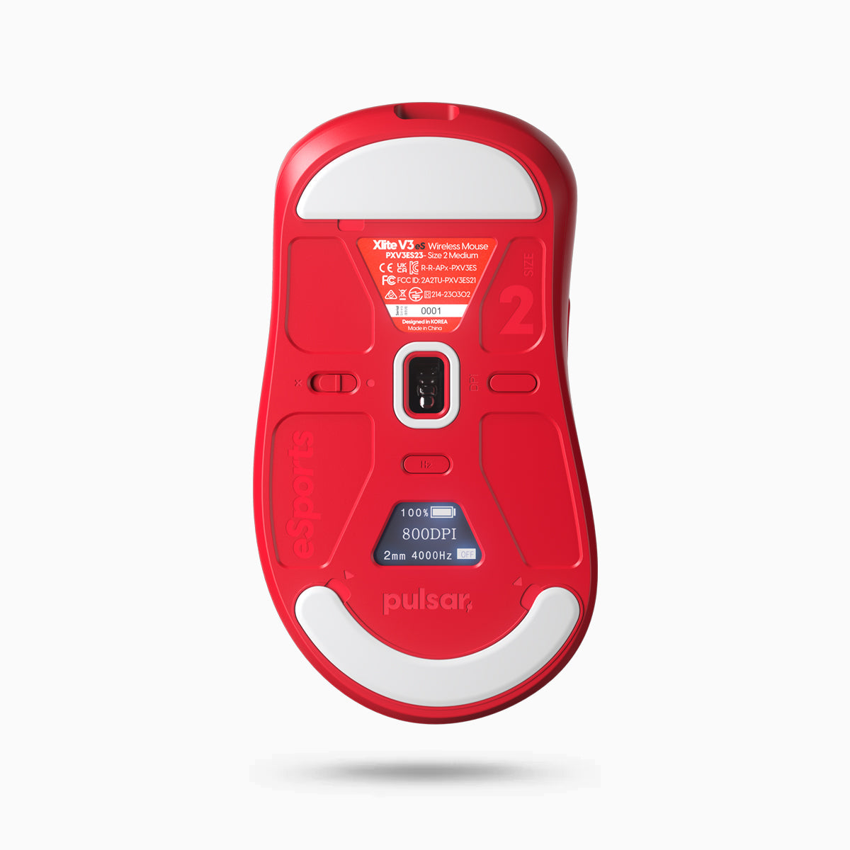 Xlite V3 eS 모델은 독보적인 기능으로 일반 마우스와 차별화됩니다. 하단에 탑재된 OLED 디스플레이를 통해 별도의 드라이버 없이 원하는 설정을 빠르게 조정할 수 있습니다. 사용자는 배터리 상태를 확인하고, 폴링레이트, LOD(Lift-off Distance), 모션 싱크, DPI(400, 800, 1600, 3200, 6400, 12800), 디바운스 타임 등 다양한 설정을 손쉽게 변경할 수 있습니다.